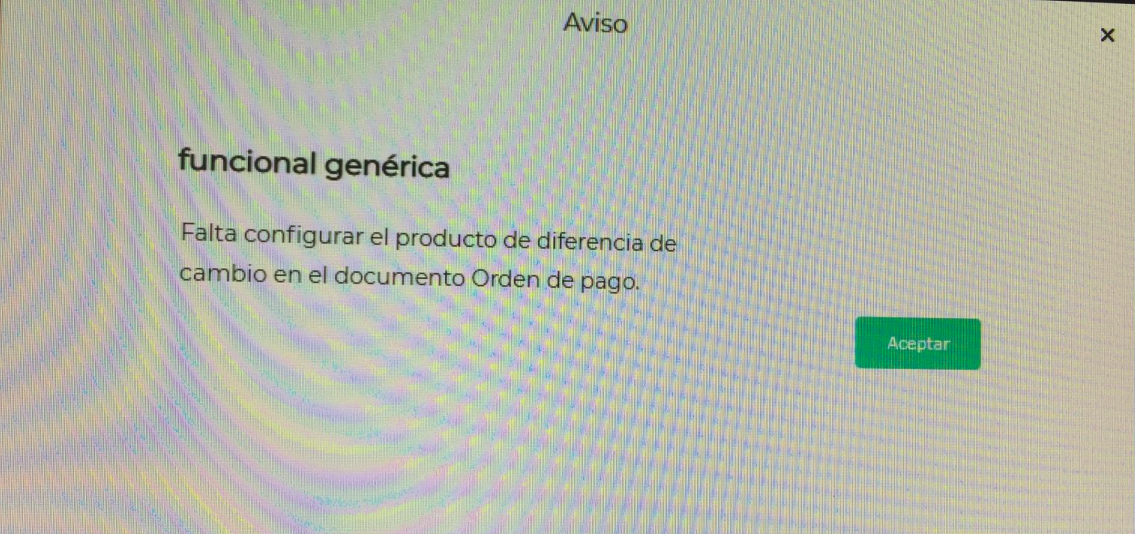 Al generar una orden de pago para cancelar una factura en dólares, el sistema muestra el siguiente mensaje: “Falta configurar el producto de diferencia de cambio en el documento Orden de Pago”