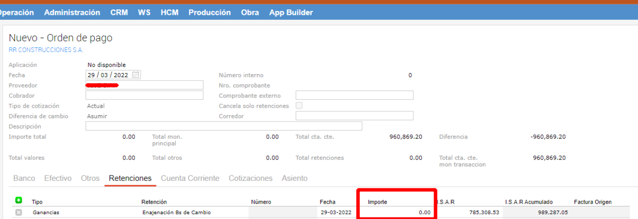 - Por último, volver a hacer la orden de pago y ya debe calcular la retención de ganancias.