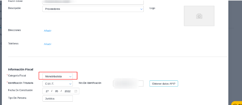 - Verificar la categoría fiscal del proveedor ingresado en la orden de compra