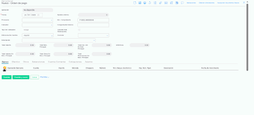 - En la solapa “Banco” del documento “Orden de Pago”, localizar y activar el check “Repetir”. Esto habilitará dos nuevos campos.