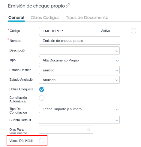 - Asegúrate de que los vencimientos se realicen en días hábiles si es necesario, configurando la opción “Vence Día Hábil” en el maestro de Tipos de Operaciones Bancarias.