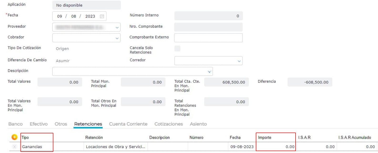 - Guardar nuevamente la Factura de Compra y controlar que en la Órden de Pago se calcule la retención.