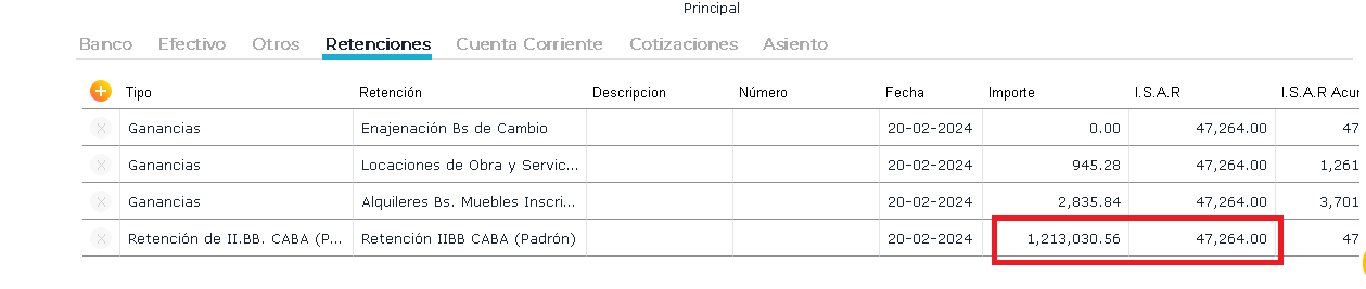 Al realizar una Cobranza / Orden de pago, en la solapa retenciones el importe de la retención es mayor al ISAR.
