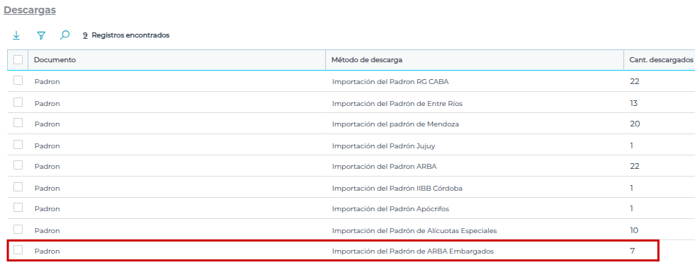 - Método de descarga: seleccionar la opción “Importación del Padrón Embargados de ARBA”.