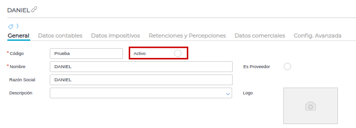 Como vemos, solo viene completo con la “Razón social” y la “Identificación fiscal”. No hace falta que completes nada, ya que el resto de los campos se completarán al hacer click en “Activar”.