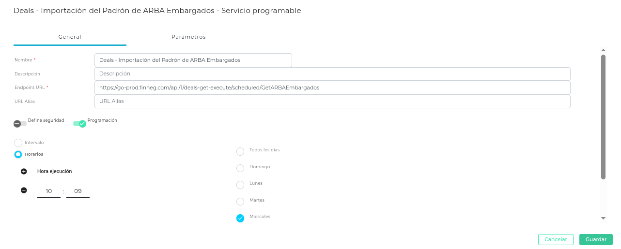 Actualmente el sistema trae por default un trabajo automático configurado para ejecutarse todos los miércoles.