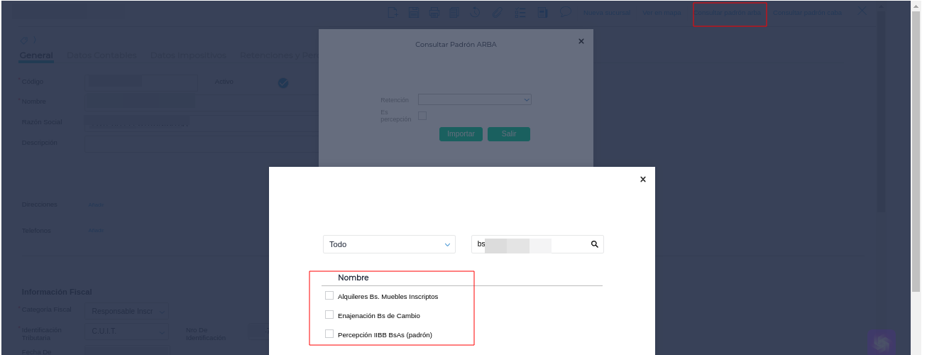 Consulta: Si se quiere consultar el padrón DENTRO del proveedor, no tengo la opcion retencion bs as