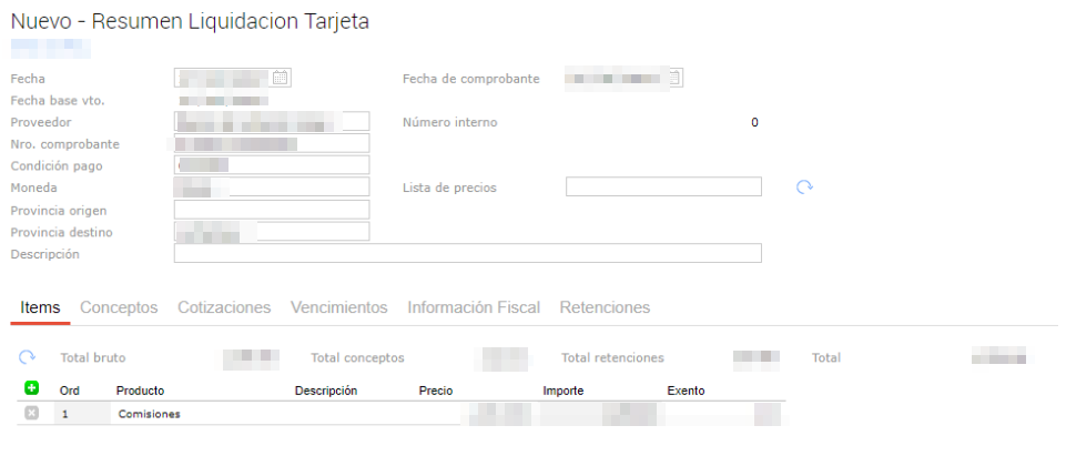 - Crear un documento tipo Resumen Bancario (ej.: Resumen Liquidación Tarjetas)