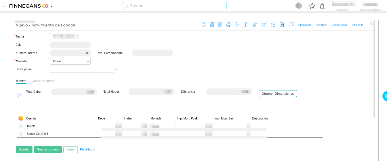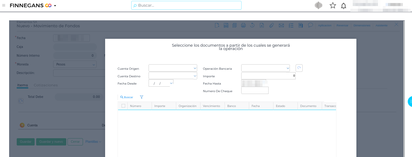 Menú → Gestión Empresarial → Tesorería → Movimiento de Fondos