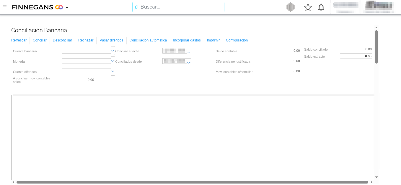 Menú → Gestión Empresarial → Tesorería → Conciliación Bancaria