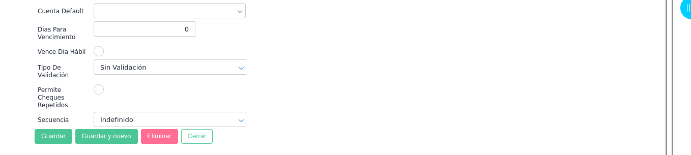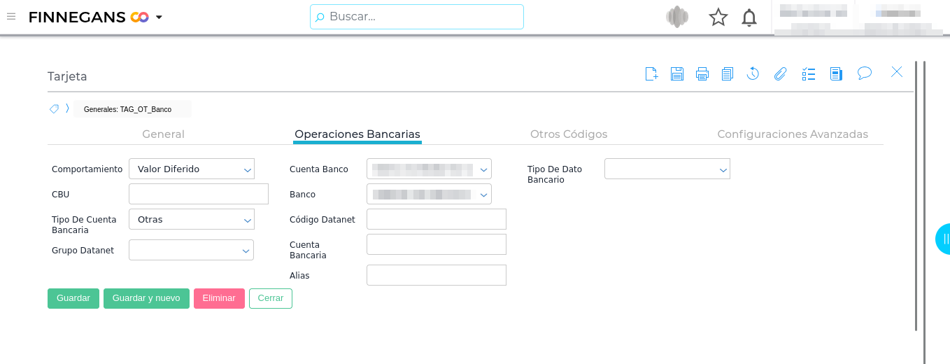 Completar los siguientes campos en la solapa Banco: