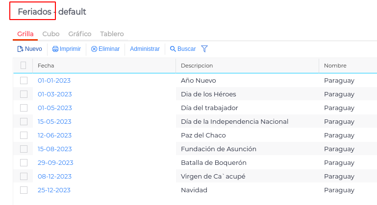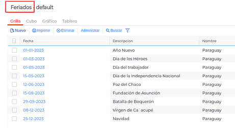 Para que el sistema compute los días feriados dentro del reporte, se debe cargar los días feriados el maestro de Feriados