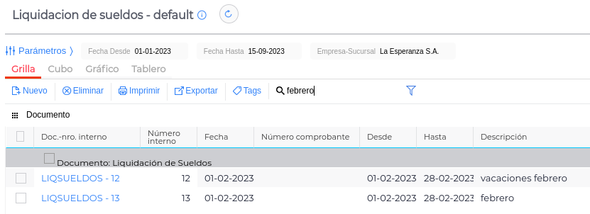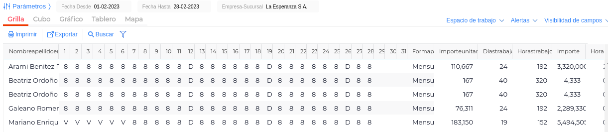 Por cada funcionario se detallan los conceptos de liquidación que conforman su salario percibido en el período seleccionado.
