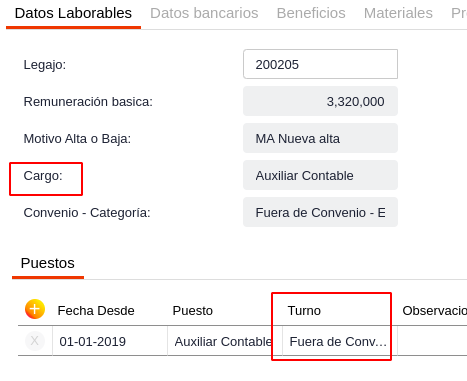 - El funcionario tenga fecha de alta activa, es decir en la solapa datos laborales, campo Motivo Alta o Baja, posea El código MA01 - MA Nueva alta