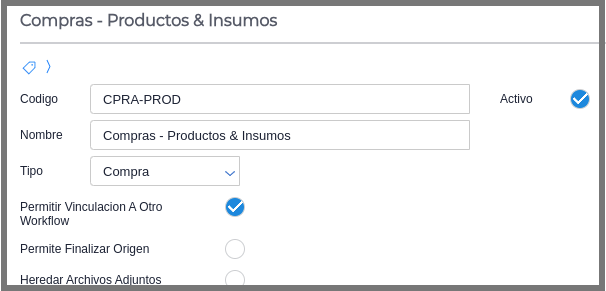 El nuevo Tipo de Documento Pedido de Cotizaciones de Compras debe estar incluido en un Workflow. Se accede desde el Menú → Configuración → Diseño del espacio de trabajo → Documentos → Relación entre documentos.