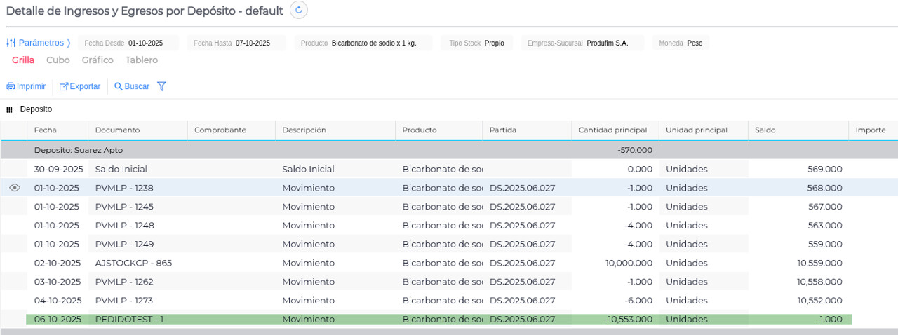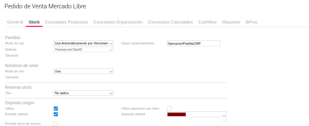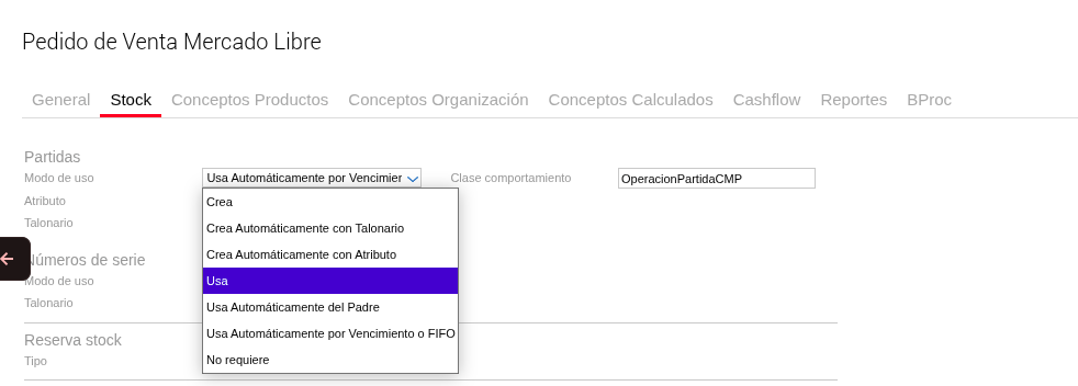 Para permitir que el pedido ingrese y el stock quede en negativo (según la lógica deseada para productos “No Controla Stock”), se debe cambiar la configuración del campo “Modo Uso Partida” a “Usa” (o similar, dependiendo de la denominación exacta en el sistema que permita la imputación sin control estricto).