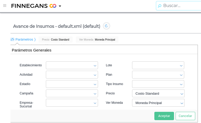 El informe a utilizar se llama “Avance de insumos”