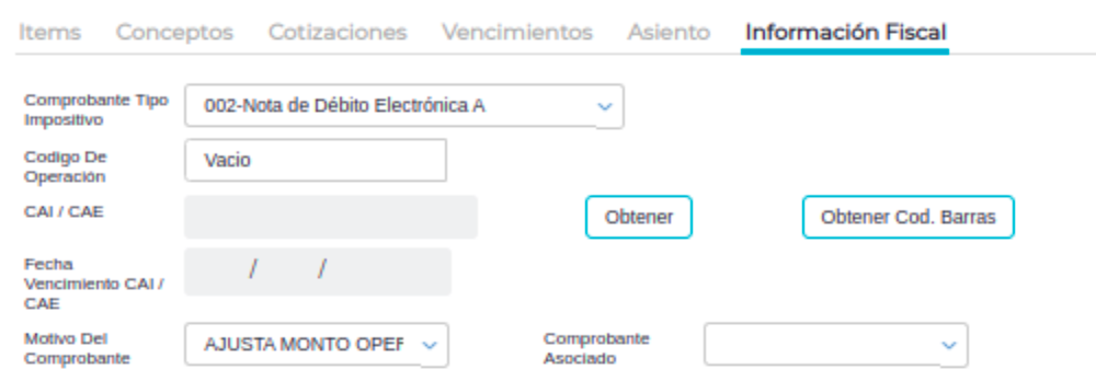 En la solapa de información fiscal no me aparecen los campos de fecha período para comprobantes electrónicos, ya sea una nota de crédito o de débito.