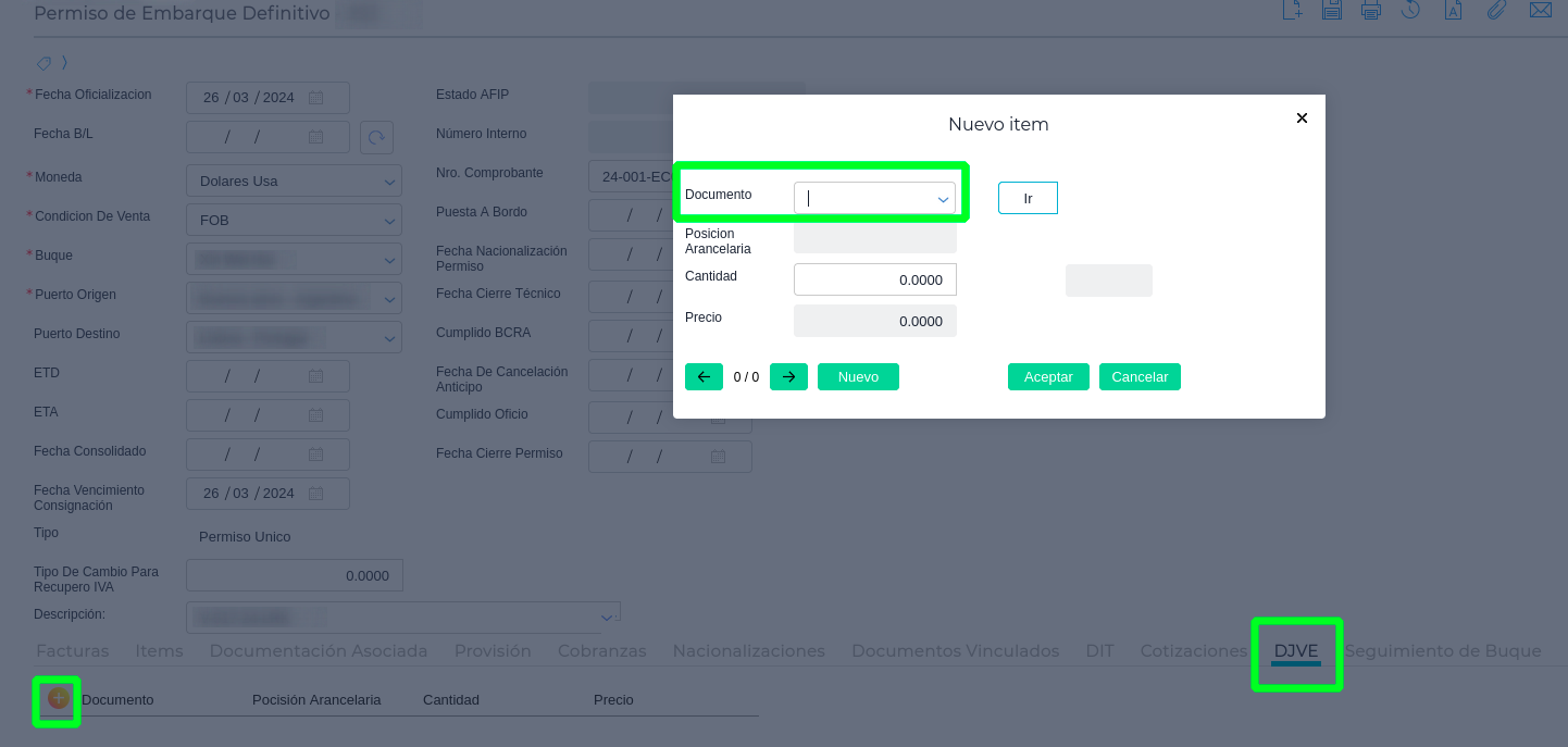 Ruta: Menú - Gestión Empresarial - Comercio Exterior - Transacciones - DJVE