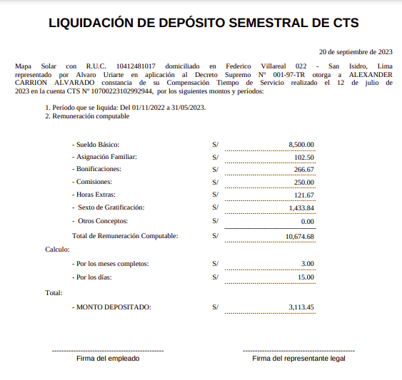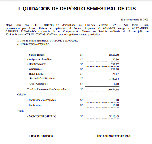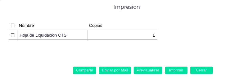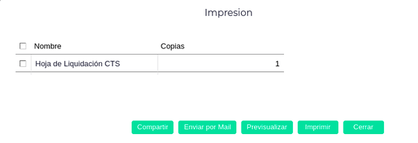 Esta configuración es necesaria para que el sistema emita la Hoja de Liquidación CTS a ser entregado al empleado por el monto percibido de CTS.