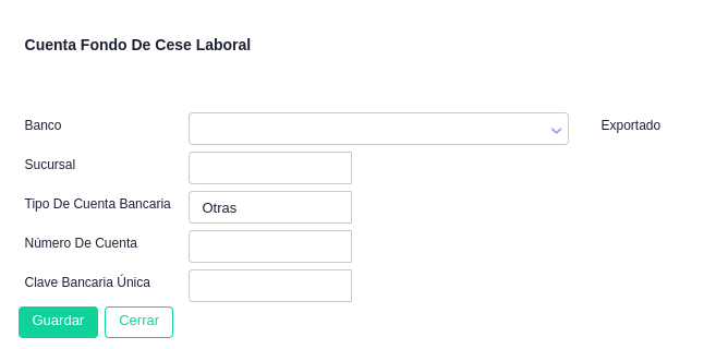 - Completar la solapa de datos bancarios, los campos relacionados con la cuenta de Fondo de Cese laboral.