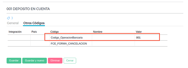 - En el Maestro de Operaciones Bancarias, en la solapa “Configuración Avanzada”, completar el código adicional que responde a la tabla 1