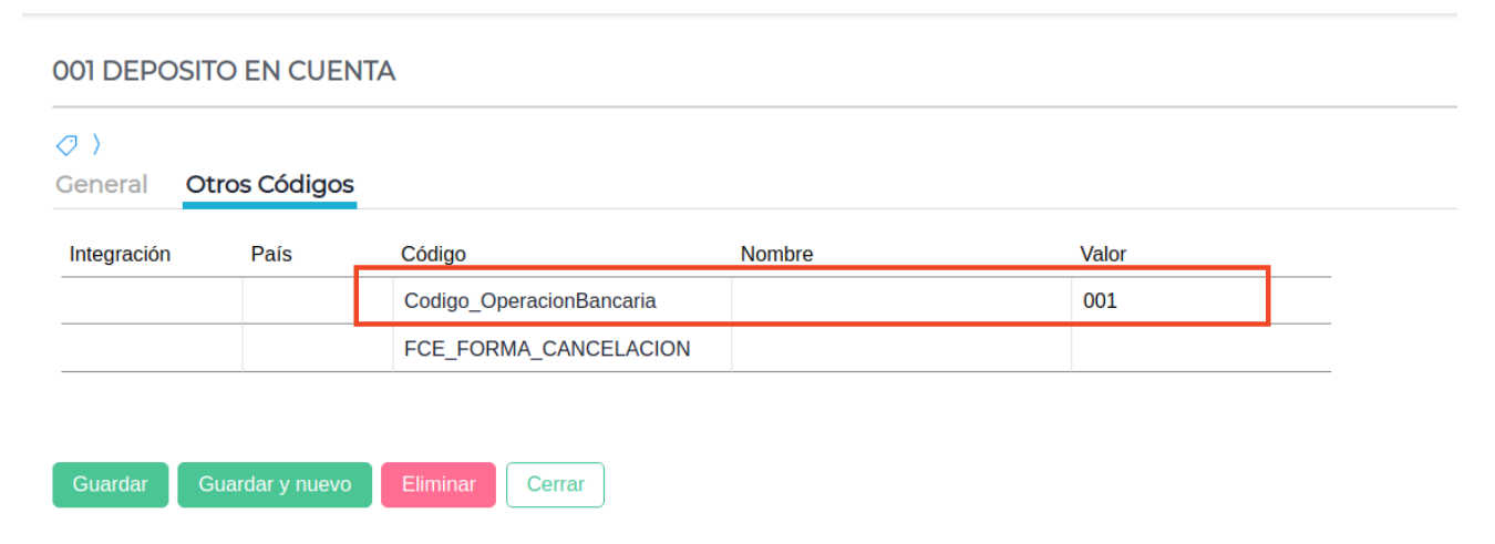 En el Maestro de Bancos, solapa Otros Códigos, indicar el valor del código adicional Codigo_EntidadBancaria, que responde a la Tabla 3 según corresponda.