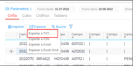 Para exportar el archivo txt, hacer click en Exportar → Exportar a TXT → Aceptar.
