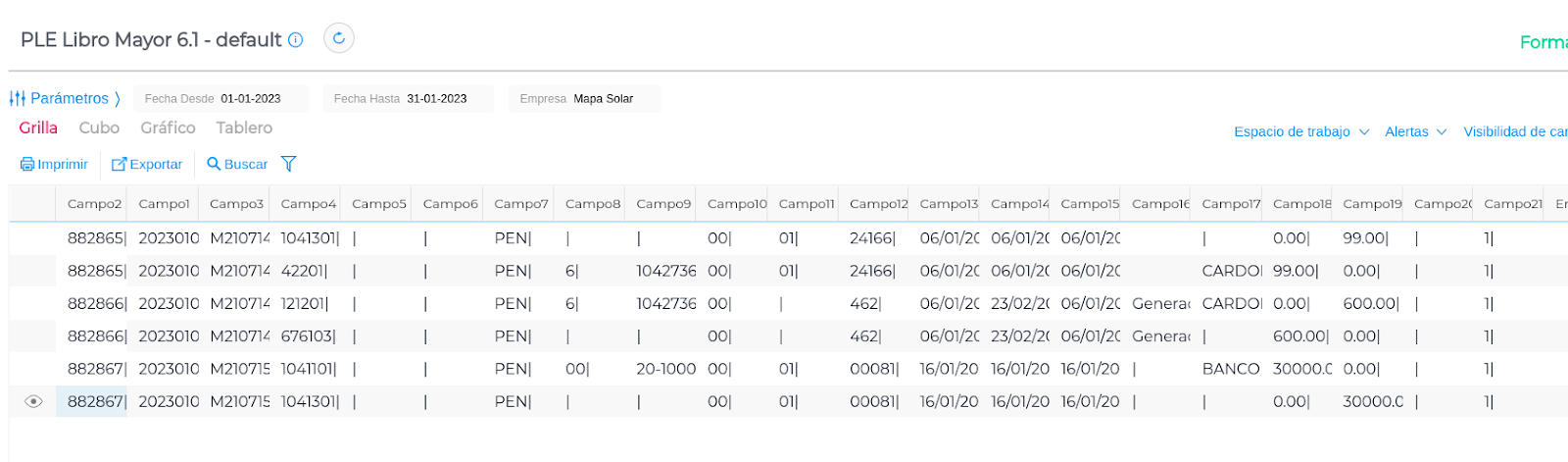 Obtener correctamente el archivo txt del Registro Ple 6.1 Libro Mayor, el mismo es de uso obligatorio para los PRICOS (principales contribuyentes determinados por SUNAT en base a su facturación anual)