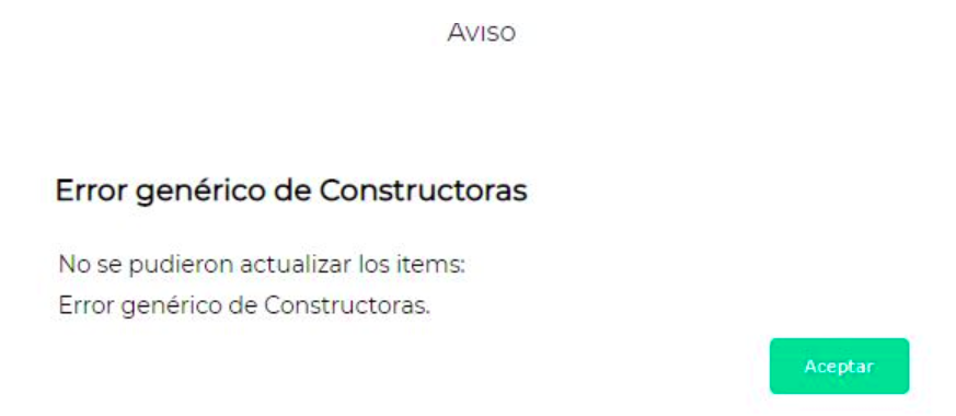 Al agregar un importe a un items de obra en la solapa Tarifarios de insumos y seleccionar el botón guardar el cliente visualiza el siguiente cartel: