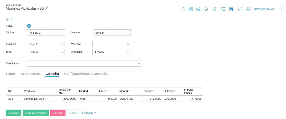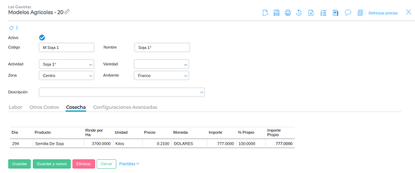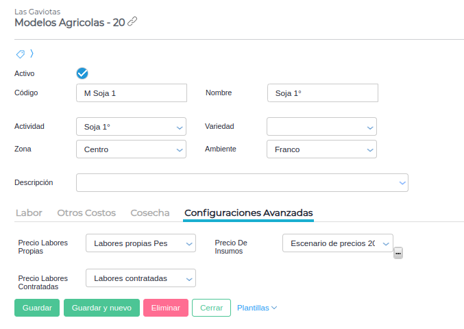 Desde esta solapa se pueden realizar las mismas configuraciones que desde su par “modelos agrícolas”.