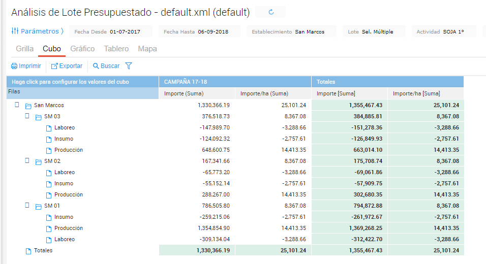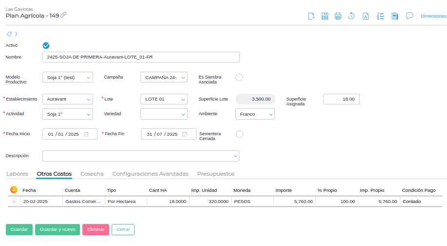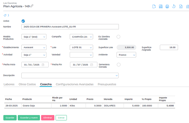 A su vez, en la siguiente imágen se puede visualizar precios e importes, así como cantidades, hectáreas, etc.