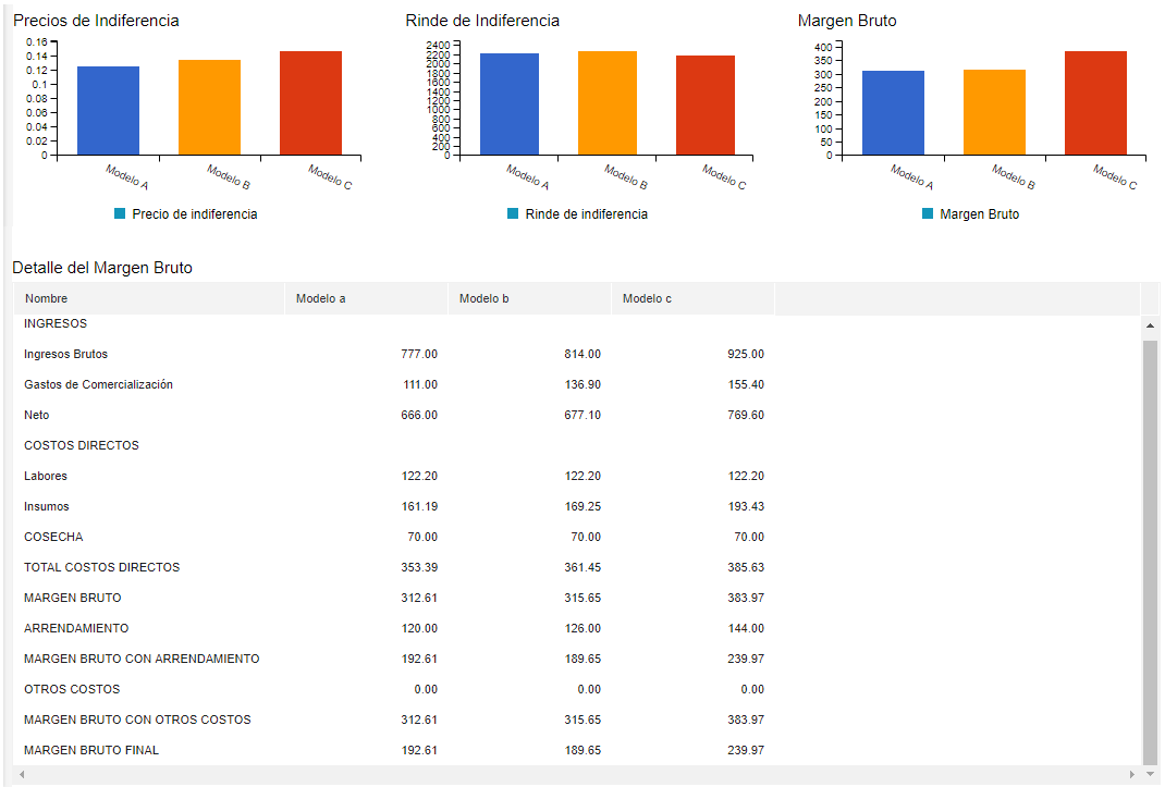 Como ayuda en la decisión del modelo a utilizar en la planificación se cuenta con la Herramienta de Análisis de Modelo Agrícola. El mismo compara distintos modelos devolviendo información detallada.