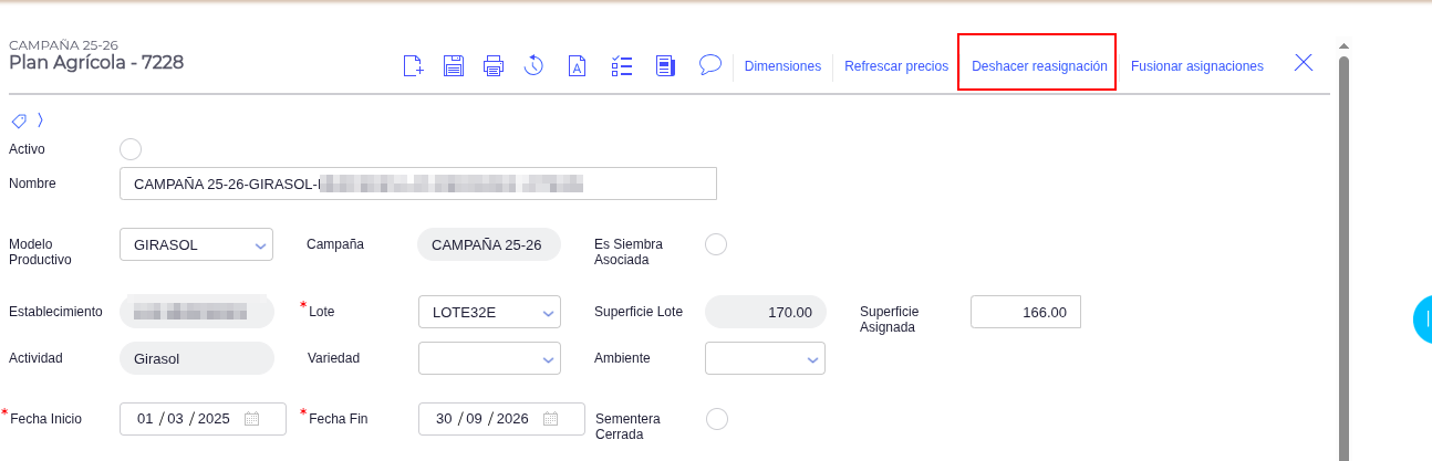 Debido a este cambio, es importante que al reasignar, ingreses el número de hectáreas directamente. No uses porcentajes.