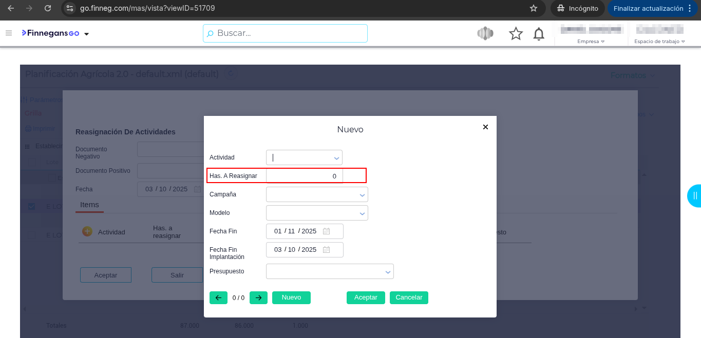 Se ha modificado el método de reasignación para que ahora se indique la cantidad de hectáreas en lugar del porcentaje. Esto significa que si ingresas “100”, el sistema interpretará que son 100 hectáreas, no el 100%.