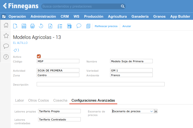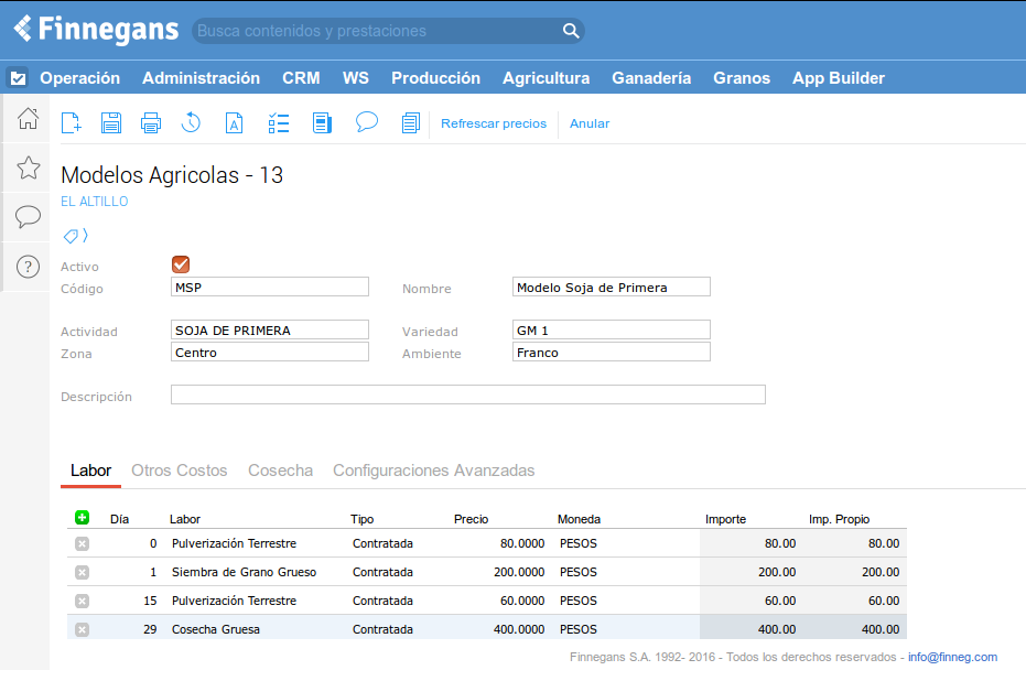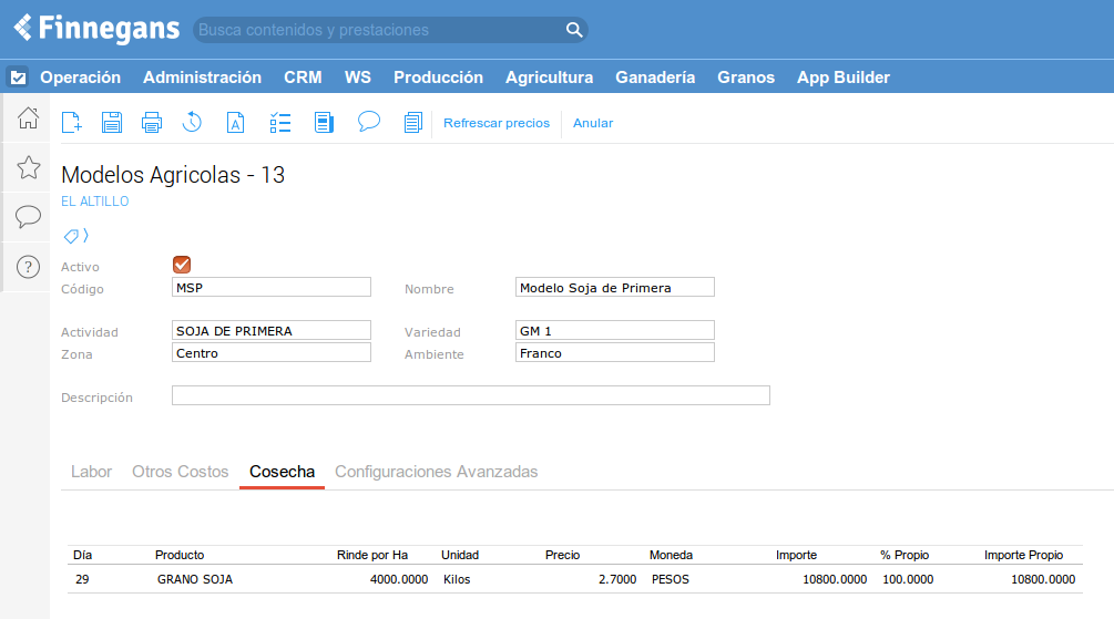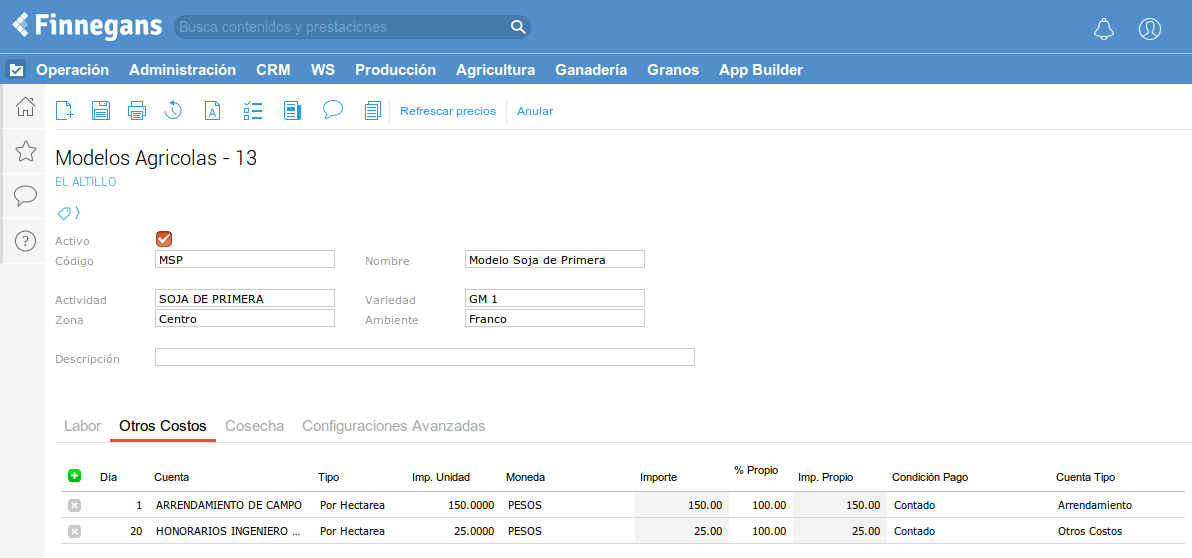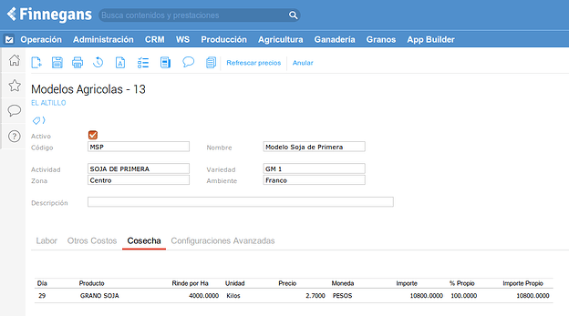 Un modelo agrícola es un plan de producción estandarizado (por zona u otras variables que el productor pueda establecer). Sirve para estandarizar la carga.