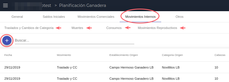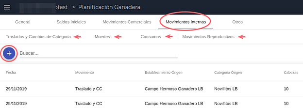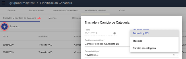 En esta solapa se cargan todos los movimientos previstos para cambios de categoría, muertes, consumos y movimientos reproductivos que se prevén para el periodo de la planificación