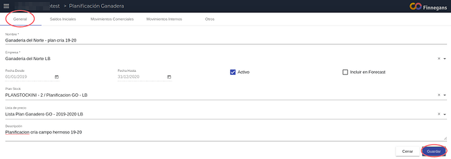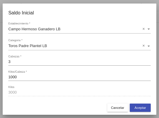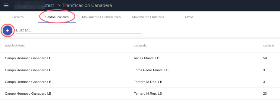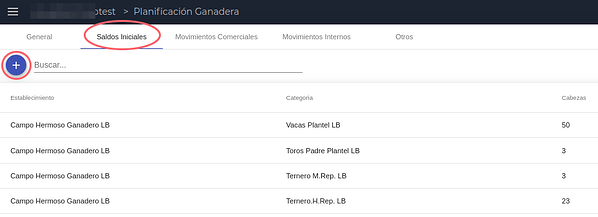 En esta sección se cargan todos los saldos iniciales de animales con los que se va a iniciar la planificación ganadera