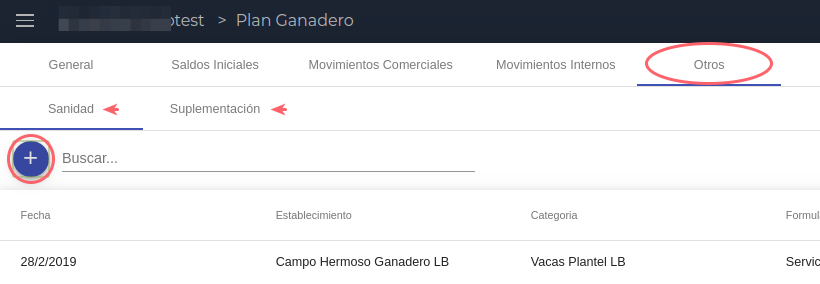 En esta solapa se cargan todos los eventos de sanidad y suplementación que se prevén para el periodo de la planificación