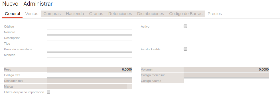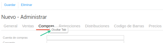 Como el producto es sólo para la venta, podés ocultar la solapa Compras ya que no la vas a utilizar.