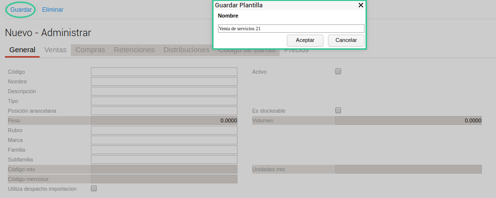 Una vez realizados los cambios guardá la plantilla y ponele el nombre que quieras. En nuestro caso la nombramos “Venta de servicios 21”