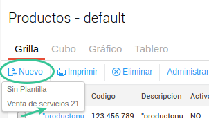 Por ejemplo vamos a hacer una plantilla para la venta de un servicio con una tasa de IVA de 21%:
