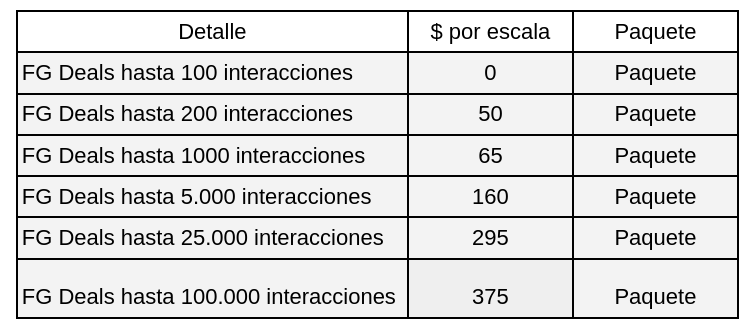 Escala de interacciones y precio por escala