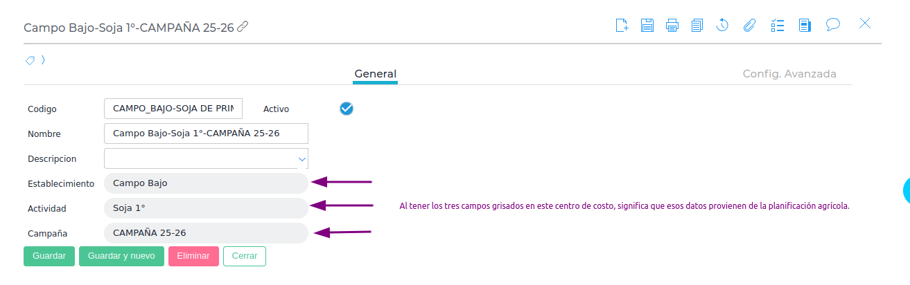 - Ejemplos Típicos: Un arrendamiento, un costo de oportunidad, o un seguro agrícola, que se pueden cargar a un asiento genérico o a una factura y se desea que formen parte del Margen Bruto.