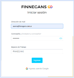 Ingresar a https://go.finneg.com con tu usuario y contraseña