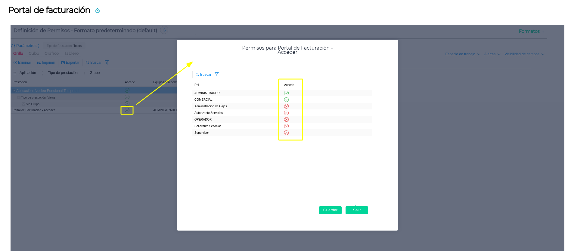 - Para comenzar con la asignación de permisos se debe acceder desde la siguiente ruta: Menú → Portal de Facturación → Engranaje “Administrador de permisos”