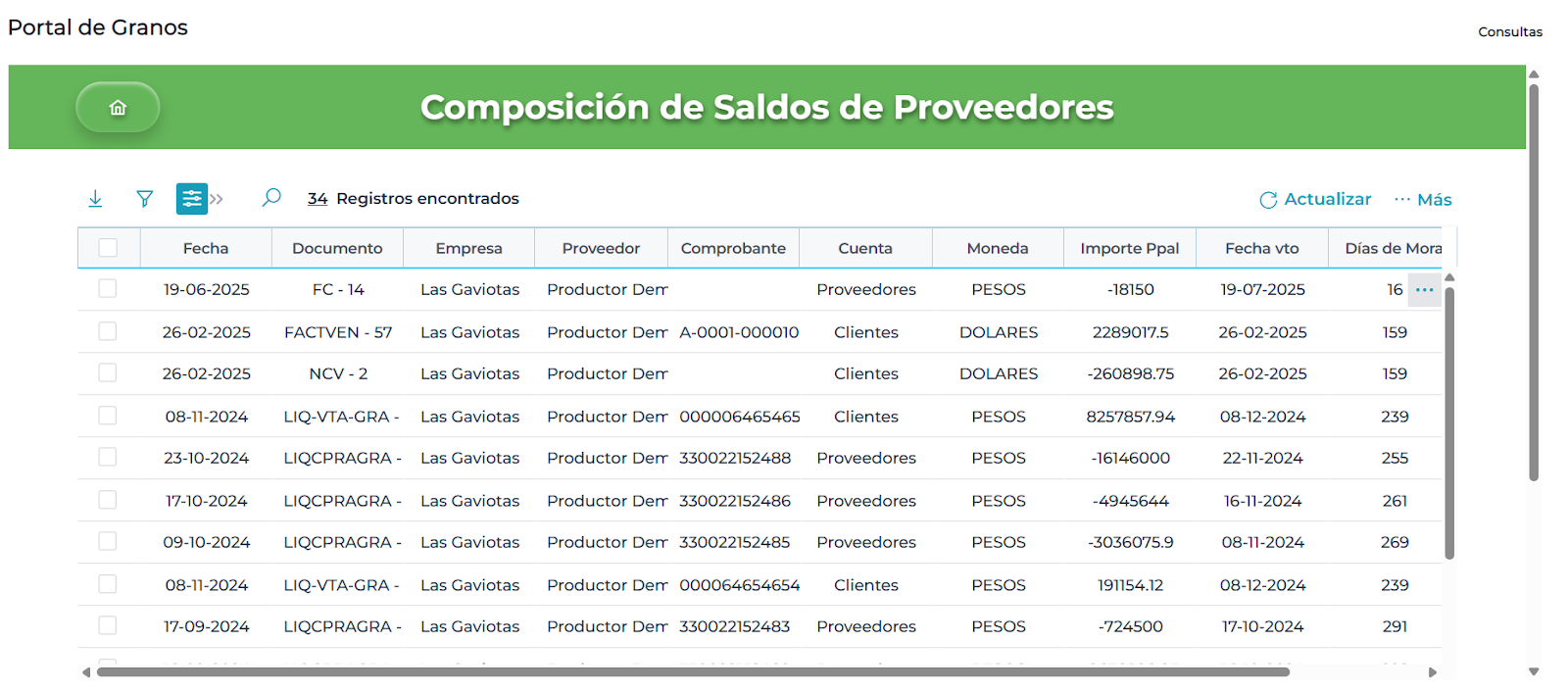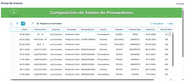 - Vas a ver el detalle de tus datos, filtrados por la empresa con la que estás trabajando.