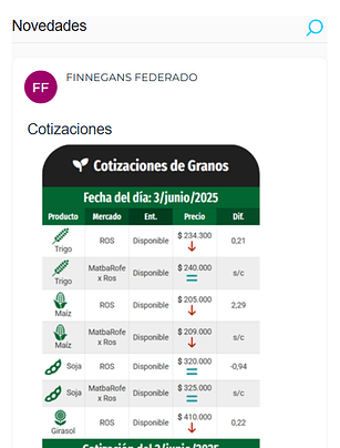 - Cotizaciones y novedades importantes que el acopiador te quiere compartir.