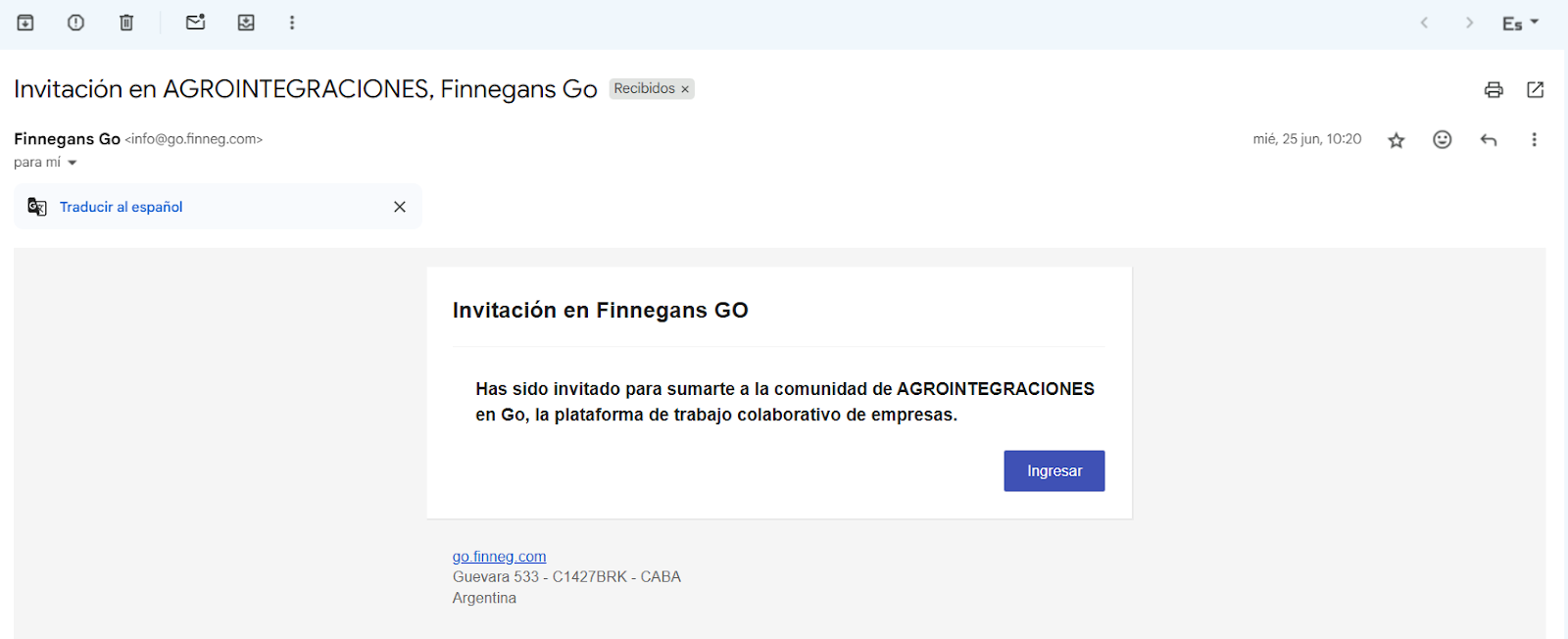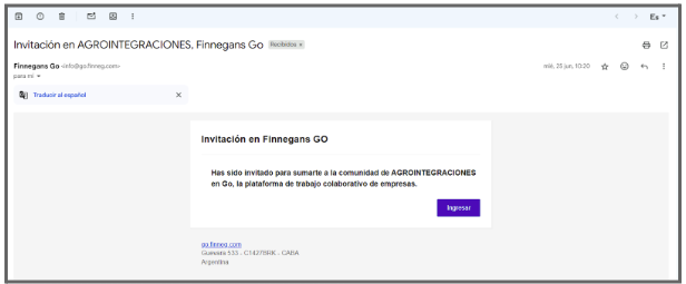 - Vas a recibir un correo electrónico de invitación. Abrilo y hacé clic en el enlace para acceder.