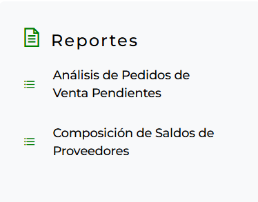 - Podés entrar a cada informe (contratos, stock, cuenta corriente, etc.) con un solo clic.